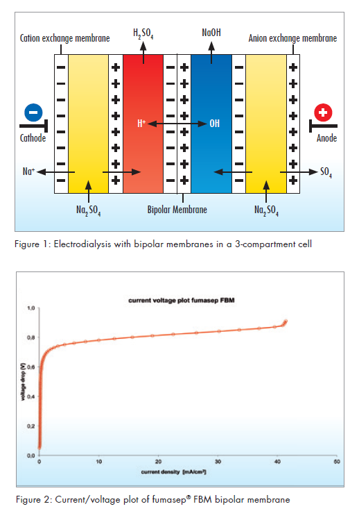 fumasep®FBM单膜双极膜由阴离子交换层和阳离子交换层组成,使用获得专利的多层涂层生产技术生产的涂层。这种复合膜具有化学稳定性,并通过编织PEEK机械增强。在里面阴离子交换层(AEM)和阳离子交换层(CEM)之间的中间层具有催化作用,当超过约1的电势差时,可促使水分解成OH-和H +离子0.8V。该膜应在可能引起起泡的正向偏压条件下运行。 CEM对准阳极,AEM对准阴极。